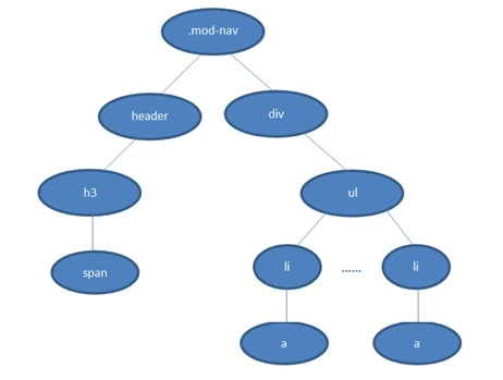 ul节点,再遍历下一个li-a,一颗DOM树的节点动不动上千,所以可以发现这种效率很低