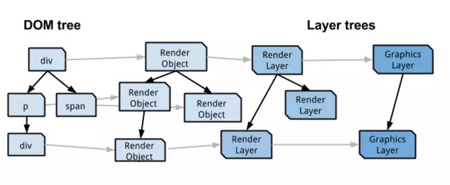 RenderLayers渲染层,这是负责对应DOM子树GraphicsLayers图形层,这是负责对应RenderLayers子树RenderObjects保持了树结构,一个RenderObjects知道如何绘制一个Node的内容,通过向一个绘图上下文(GraphicsContext)发出必要的绘制调用来绘制Nodes